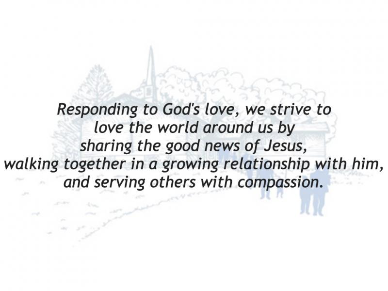Responding to God's love, we strive to love the world around us by sharing the good news of Jesus,