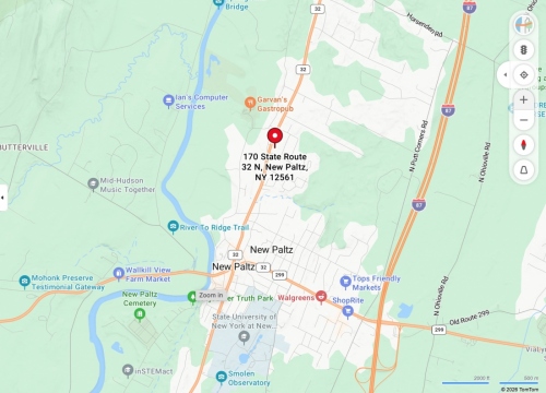 Our church property is located at 170 State Route 32N, New Paltz, NY 12561.  If you are trying to find us by GPS, sometimes using 170 N Chestnut Street works better! We are less than a mile North of the village of New Paltz, 10 minutes from Rosendale, 13 minutes from Gardiner, 15 minutes from Highland, and 20 minutes from Kingston.